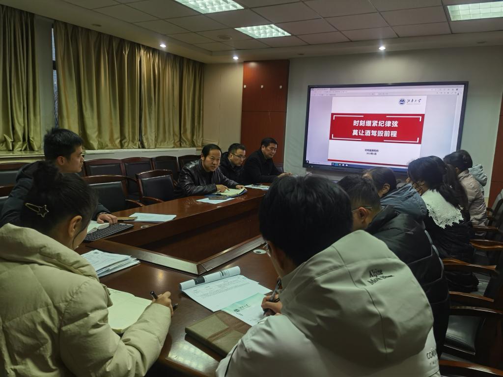 1月19日,党委研究生工作部、研究生院在A524会议室组织开展了关于“寒假、春节期间强化教育管理杜绝酒驾醉驾问题”的警示教育主题党日活动,党委研究生工作部部长、研究生院院长吴小俊及全体成员参与了此次活动,由副部长、副院长陈周主持。