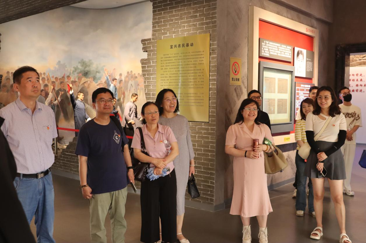 活动伊始,首先参观了宜兴市革命传统教育、爱国主义教育和党风廉政教育的重要基地——宜兴党史陈列馆。在跟随着工作人员的讲解下,全员回顾了党的光荣历史,重温了共产党人不畏牺牲、前赴后继的大无畏精神,通过深入了解这部“走着读”的宜兴地方党史,大家深受感染,矢志践行初心使命。